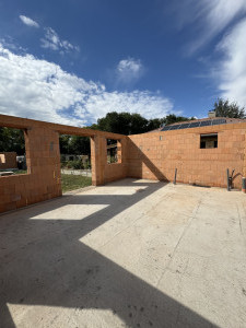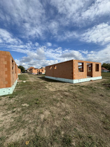A teherhordó falak 30 cm-es Porotherm Xtherm kézi falazó elemből készülnek, a belső falfelületek 2–3 sor glettelés után fehérre festve kerülnek átadásra.