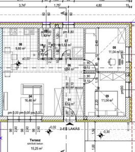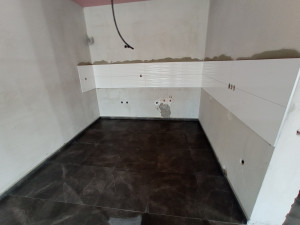 -Nappali padlózata hidegburkolattal és a szobák padlózata laminált padlóval van ellátva