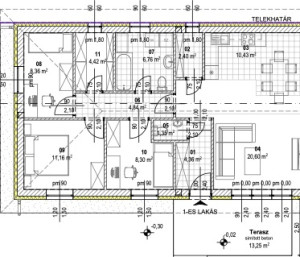 -Nappali padlózata hidegburkolattal és a szobák padlózata laminált padlóval van ellátva