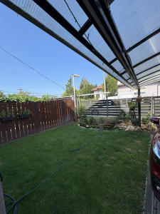 Minimális gondozást igénylő kert igényes gyeppel, kis kerti tóval